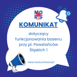 Prosimy o zapoznanie się z komunikatem dotyczącym funkcjonowania basenu przy pl. Powstańców Śląskich 1 od 16 marca.